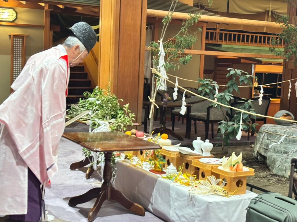 元旦に阿智神社の宮司様に執り行っていただいた際の神事の様子です。